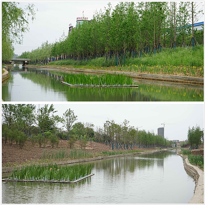 項目簡介:紗帽河全長1.55km,泥湖河全長1.90km。治理前,紗帽河、泥湖河沿岸部分工業污水與生活污水管道接入雨水系統,污水直接隨雨水排入河,嚴重污染了河道水體,河道生態遭到嚴重破壞,河岸護坡損壞嚴重。通過水生植物種植、礫石床鋪設、溢流雨水處理系統構建、人工水草布設安裝、曝氣充氧設施安裝等措施,使紗帽河、泥湖河主要水質指標透明度、溶解氧、氧化還原電位、氨氮低于國家黑臭水平標準閾值,成為一條具有自凈能力的河道與充滿生機的生態廊道,達到了“水清、水活、景美、路暢”生態與景觀兼顧的治理目標。
