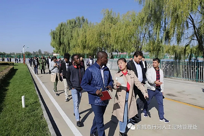 2018年10月10日上午,亞太及非洲地區等40多個國家記者團一行百余人深入丹河人工濕地,實地考察了中國最大的垂直流人工濕地。市環保局副局長李維民、丹河人工濕地管理處主任李四團、副主任崔賓飛陪同。記者團在聽取了工作人員講解后,深入丹河人工濕地進行察看,詳細了解工藝細節及處理流程,不時通過翻譯向工作人員提問人工濕地運行管理方式及水質凈化等情況,對濕地的運行管理表現出極大興趣。