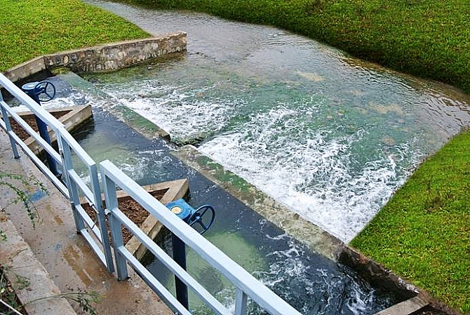 姜華一行實地查看了兩處人工濕地的進出水情況,并詳細詢問了水質處理前后各類指標的降減情況,全方位了解了兩處人工濕地的處理工藝與功效。
