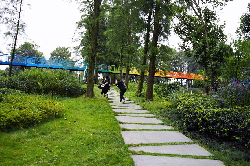 競走賽將參賽隊員分為4組,從湖光序曲出發,以小組為單位競走1.5公里到達華僑城生態濕地公園,同時在公園內部展開一系列趣味闖關游戲及打卡環節,最快完成規定任務到達終點的小組獲得團體冠軍獎。