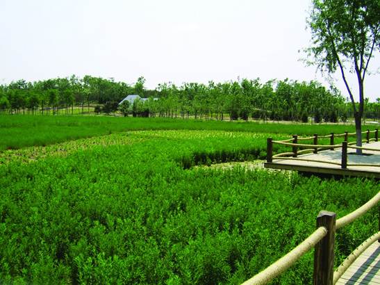 本項目濕地建造的目的是通過對清河污水處理廠尾水進行深度處理,對公園及其人工湖進行生態補水,以及其水系實施循環凈化,同時營造濕地自然景觀。濕地類型因地制宜的選取了側向水平潛流構建濕地、豎向上升流構建濕地以及水平潛流、上升復合構建濕地的組合工藝。該濕地建成后,人工湖湖水保持在地表水Ⅲ類。
